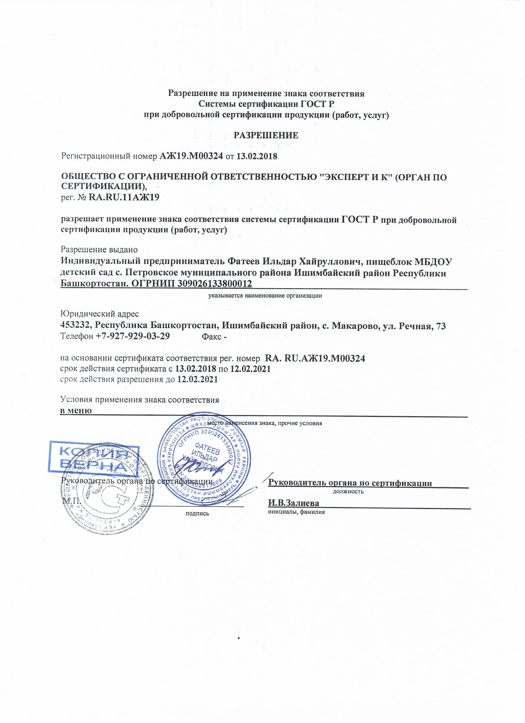 | Ишимбайский р-н, с. Петровское, ул. Трудовая, 10 | "Ладушки" |